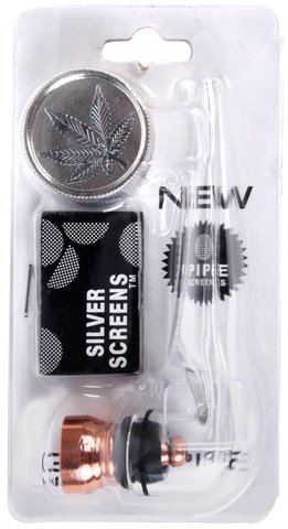 Fajka szklana - kominek metalowy cm + sitko